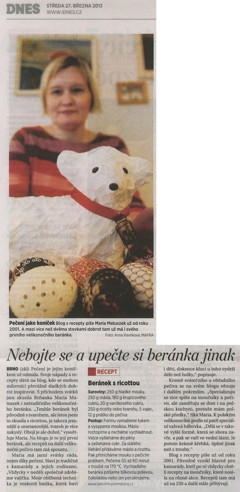 | MF Dnes, příloha Brno a jižní Morava, 27. 3. 2013, s. B3 |